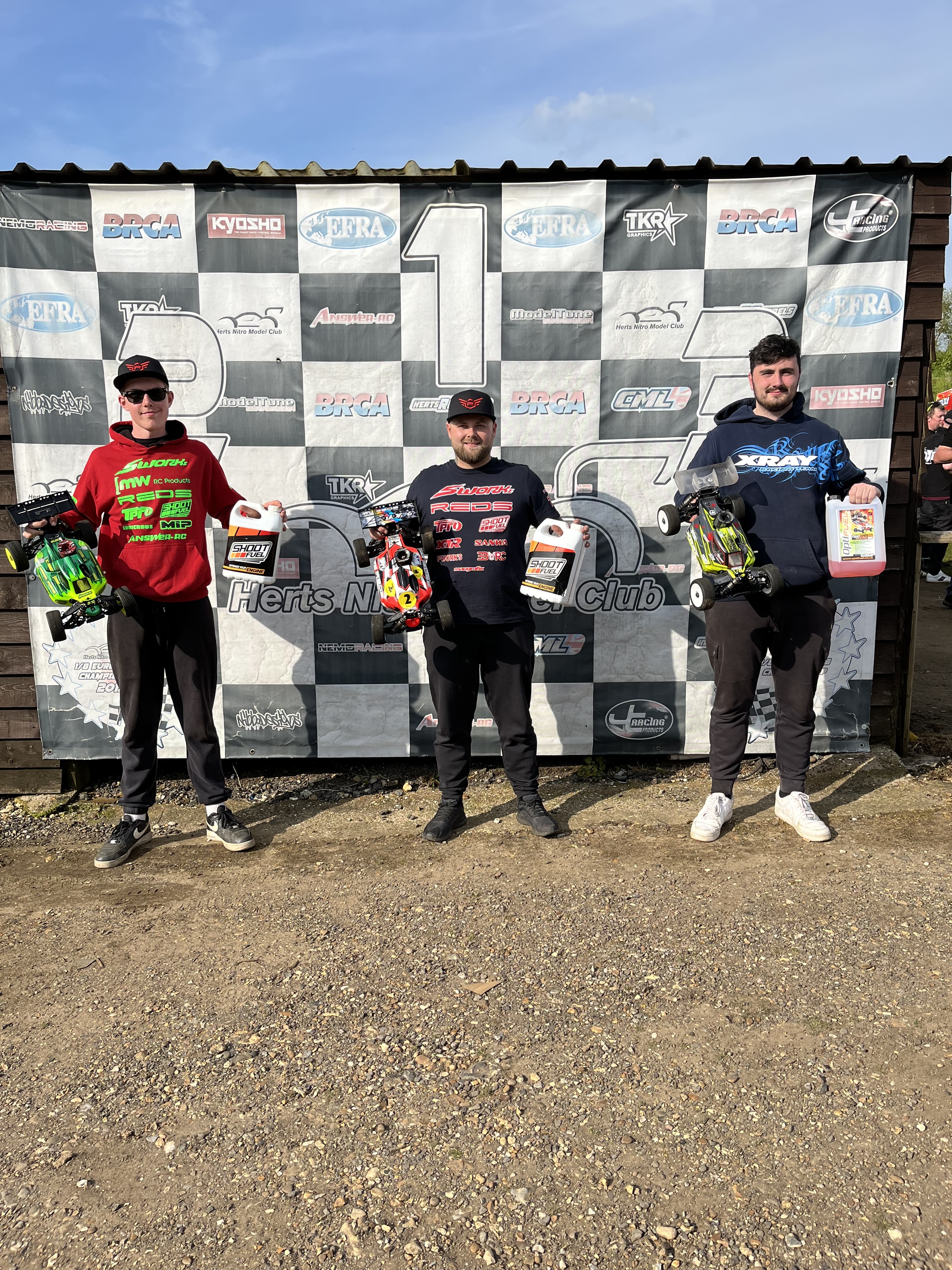 The A semi saw the Skidmore show! With both Joni and Will being 1st and 2nd for the entities of the race, an impressive drive from the brothers. Joni taking the win with Will 2nd. A brilliant drive by Lee Martin and the new N1 buggy saw him take the 3rd spot 3s up from the super fast Jnr, Sworkz driver Dylan Saunders who took 4th. The mega consistant HB of Graham Alsop came through next for 5th. There was a good battle for the 6/7th places between Mike Lewis’ Mayako and the Sworkz of James Le Pavaux, with James eventually getting 6th at the buzzer with Mike 7th. The main event would see Joni pole and Elliott 2nd! The gathering crowd were in for a race that saw lots of thrills and spills. After a relatively straight forward first lap or so, Boots made an uncharacteristic error which saw him at the back of the field in 12th. This meant Joni had a good lead, but that too was short lived, with him dropping back to 3rd, behind the Sworkz of Jnr driver Dylan Saunders now leading and the WRC of Lewis Jones in 2nd. Boots was on a mission, and by lap 14 he was back up with the leaders again! An incredible drive by him to carve through the countries best drivers! Joni managed to pass Dylan just after half way with Boots 3rd and Jones 4th, unfortunately a return to the pits for Jones saw him drop out of the hunt, so now Boots and Skidmore were gunning for Saunders! It was an amazing race between all 3 with Boots and Skidmore pressing the young Sworkz driver for many laps, Joni passing him just a few laps before he suddenly stopped on track from 1st, leaving the door open for Boots. Dylan did manage to pass Elliott again but Boots retained the lead after a few laps and that’s where he stayed, taking the win from Saunders in 2nd with the Xray of Will Skidmore in 3rd. 4th was the Agama of Kevin Brunsden and 5th Graham Alsop and his HB car. A great race to finish off a great weekend of racing and the perfect opening event of the season.