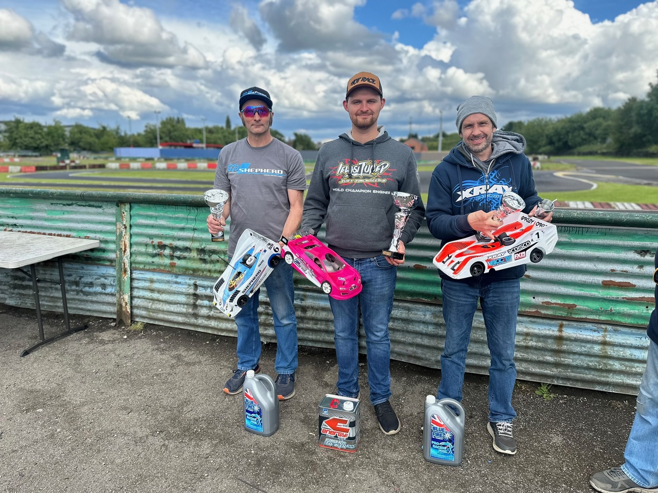 Rain was stop and start during qualifying and by the last round it was possible to run on damp foams for 1/10 and specific rubber wet tyres for GT8. At the end of qualifying the positions were as follows: