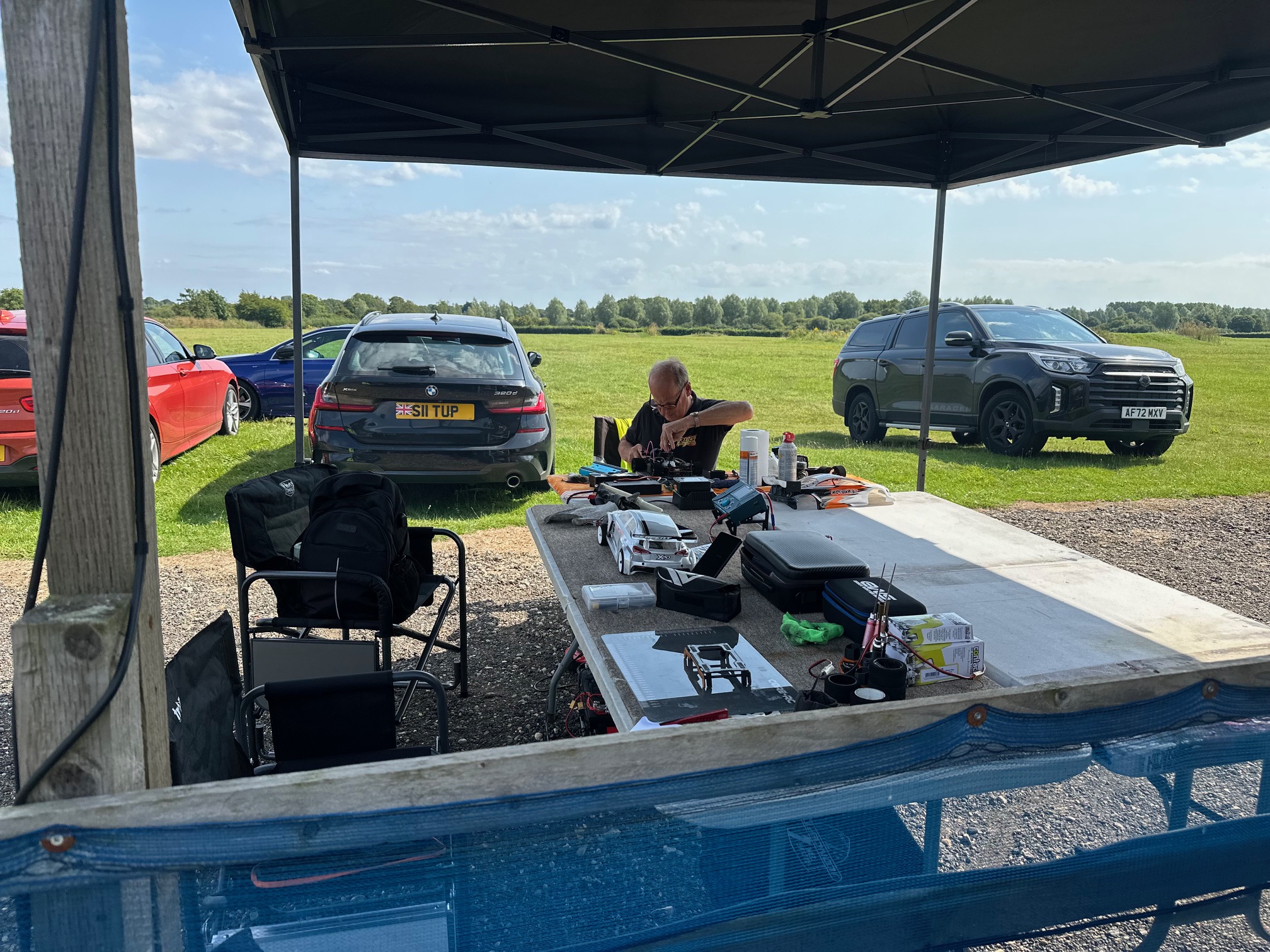 The forecast was for a sunny dry weekend. As per usual the local members had made the track very presentable with newly painted lines and a different layout from last year designed to make it a little smoother for the nitro drivers. Saturday practice was spent trying to find a working set up for the circuit and to assess the tyre wear which was previously high . With the track available all day some drivers ran in engines.