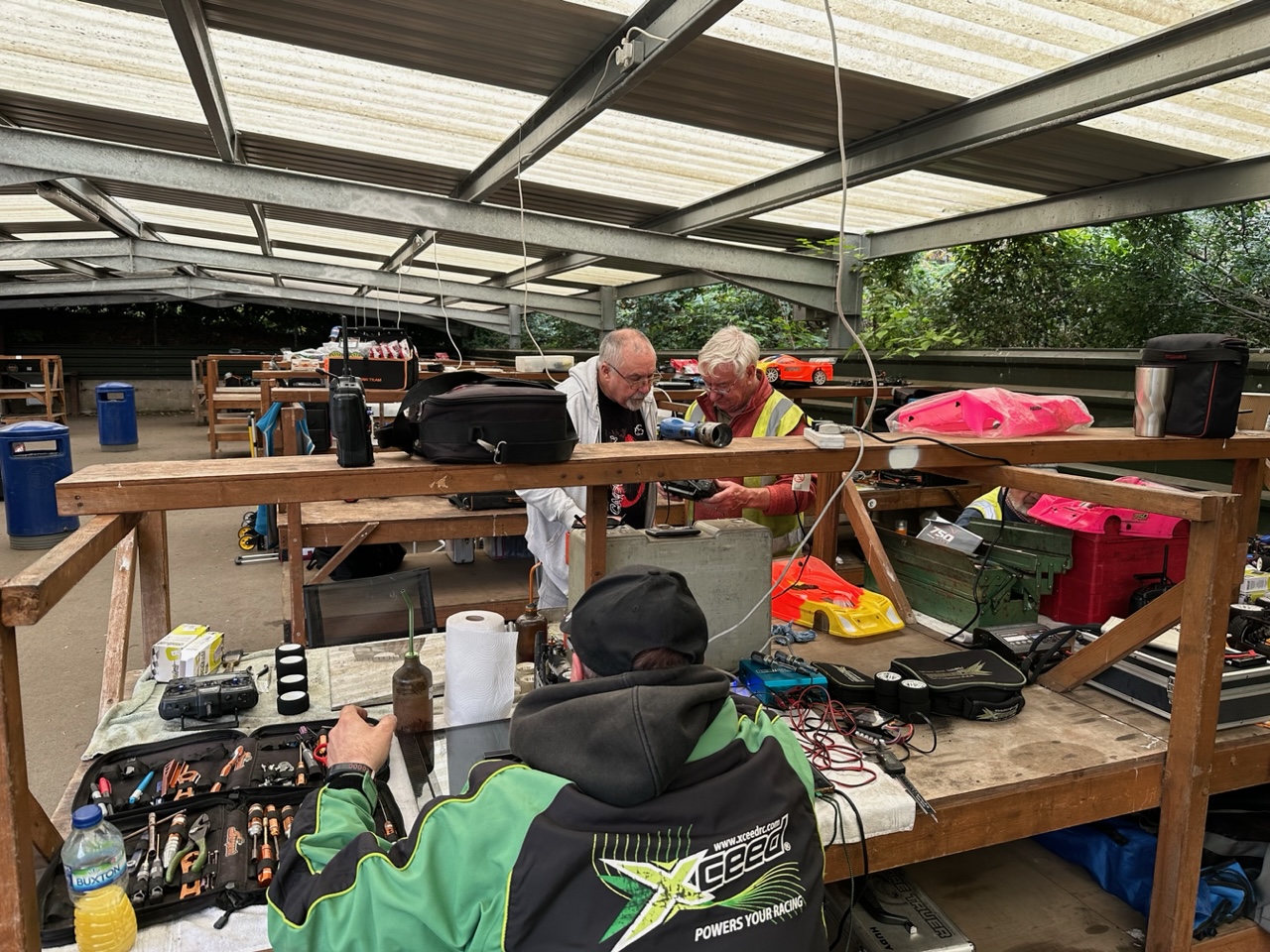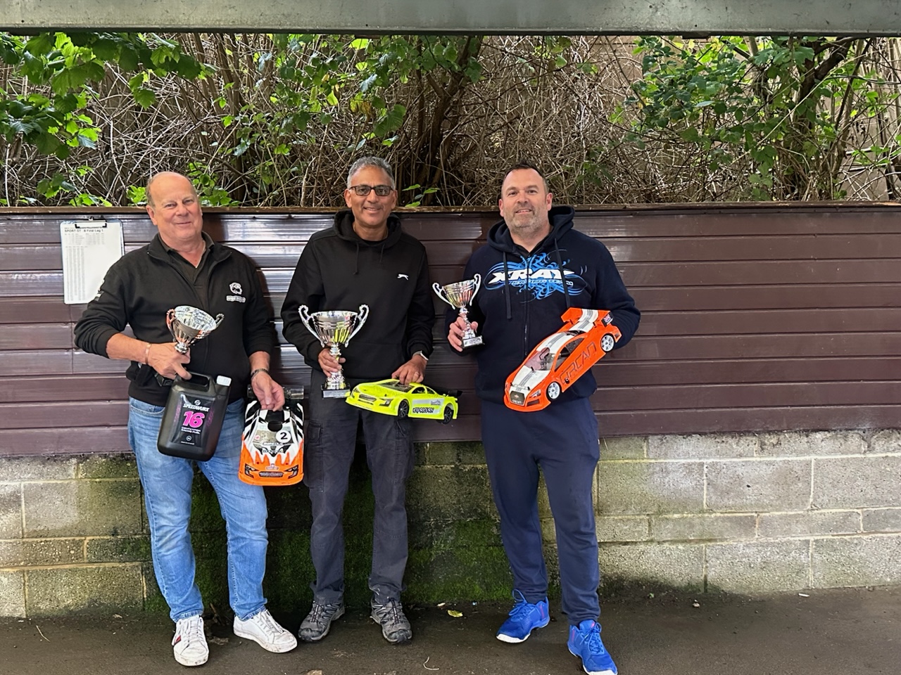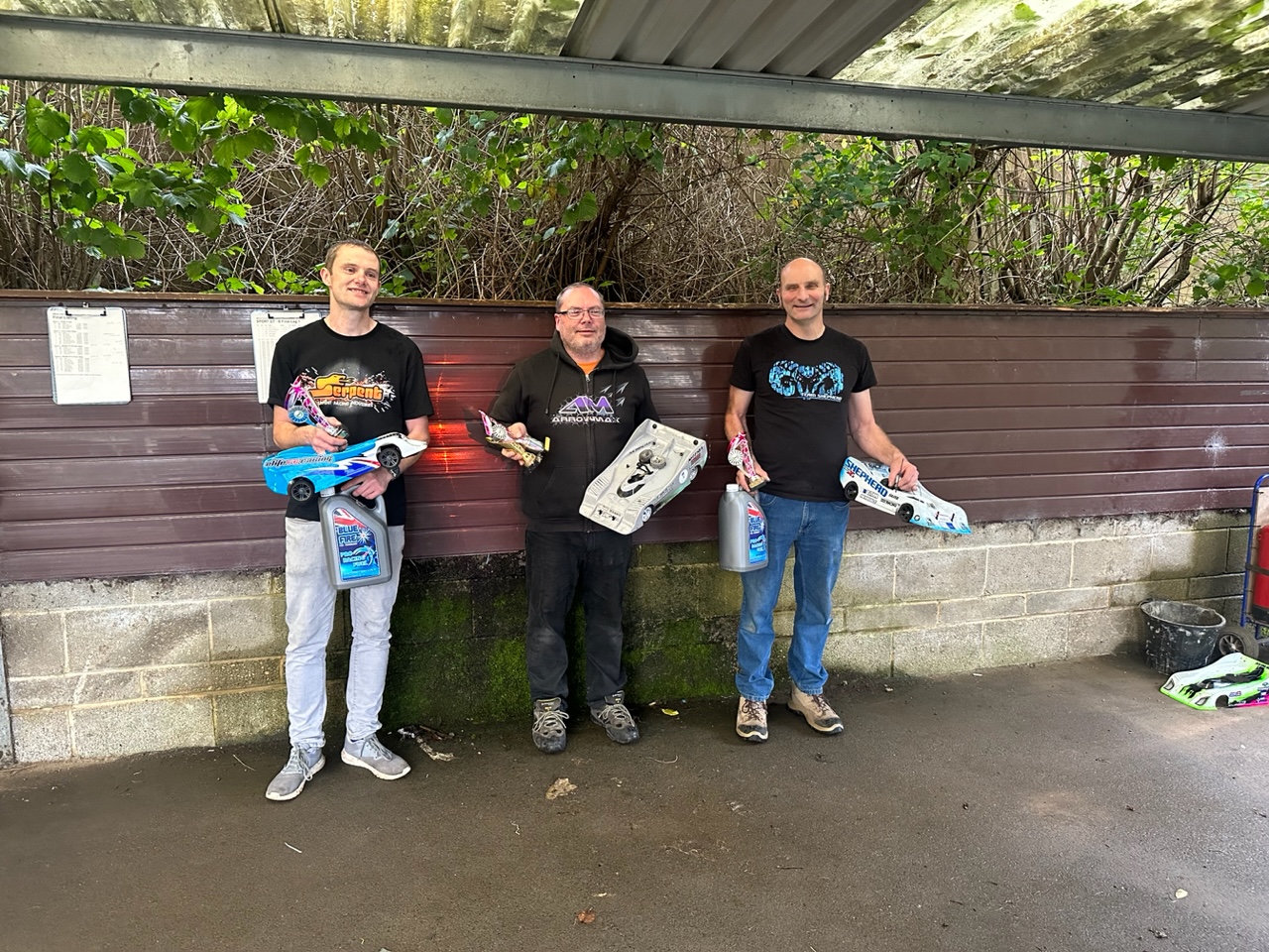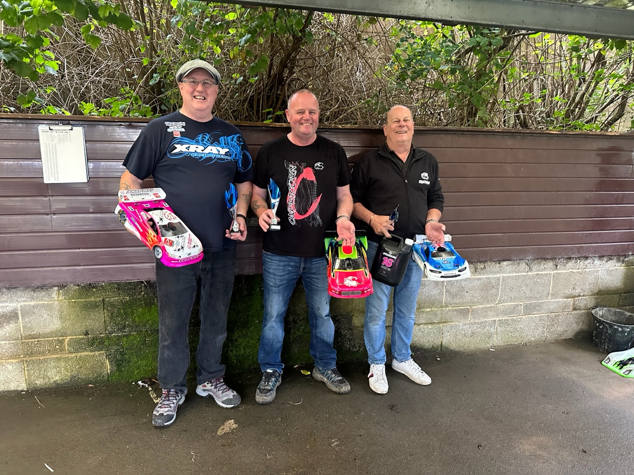 This was two finals in one with both the usual 200mm drivers and the Wide bodied shell drivers fighting their own battles.. Ady Garrick eventually came though for the wide bodied racers with Mark a couple of laps down ,one lap ahead of Nigel. Neil Wallace showed his class winning the 200mm Touring comfortably and finishing only one lap behind Ady despite running the narrower shall and narrower tyres. Dev took second just one lap ahead of Jon who completed the podium.