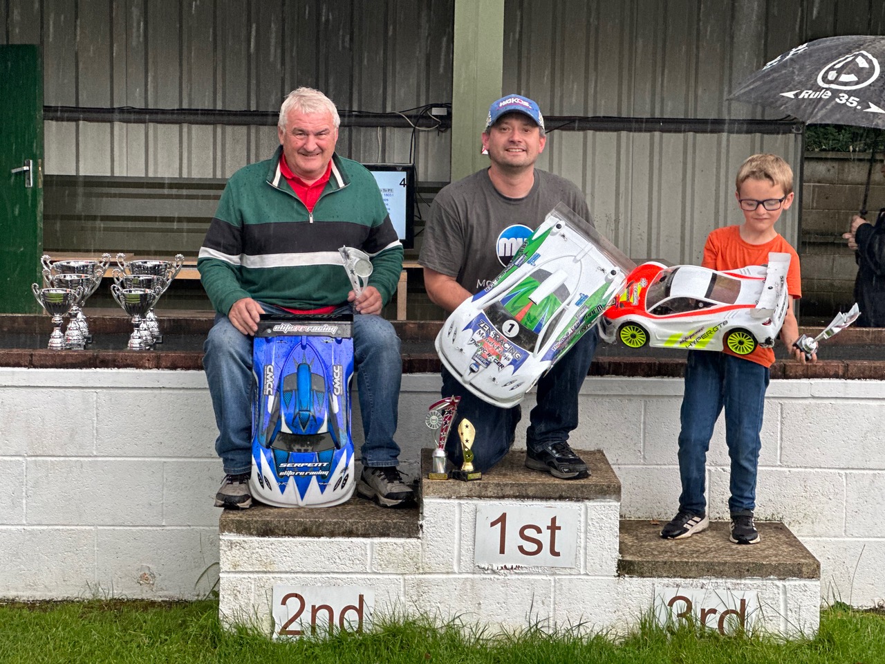 The track started slightly damp but dried out resulting in faster laps for the drivers who chose foams over damps. A close final with the first three within 2 laps of each other .Daniel took the win, from Dev with Ian only 3 seconds behind in third.