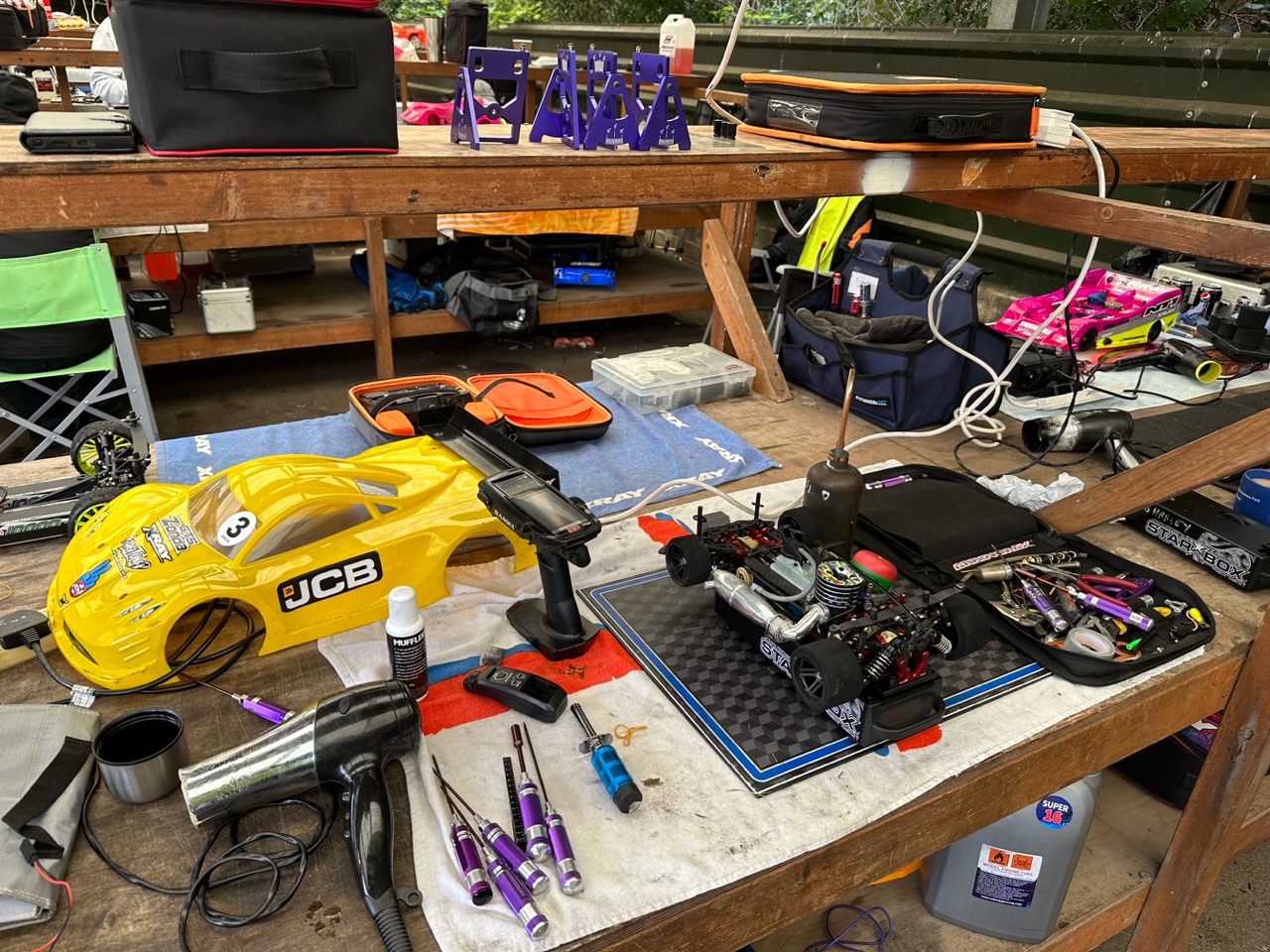 Craig Nutting was absent but had already clinched the GT8E championship. Young Alfie Wadsworth was having a go in the GT8 electric and Mark Green entered the 220mm class ensuring a challenge to Matthew Cook and Adam Southgate. As at Cotswold several drivers in the 200mm Touring were running the a wide bodied Touring shell with the wider tyres. Again there were no entries for the 1/8th GT8 Nitro with this looking like the end for this class.