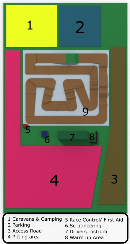 All camping at the BRCA national will be in the field behind the track, no caravans/Campers or camping Tents will be allowed in the main field in-front of the track as per the site plan.
